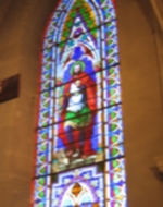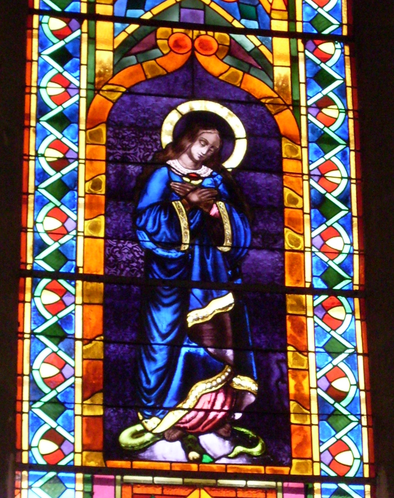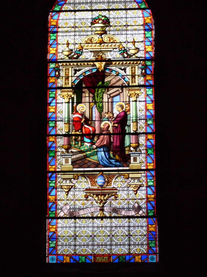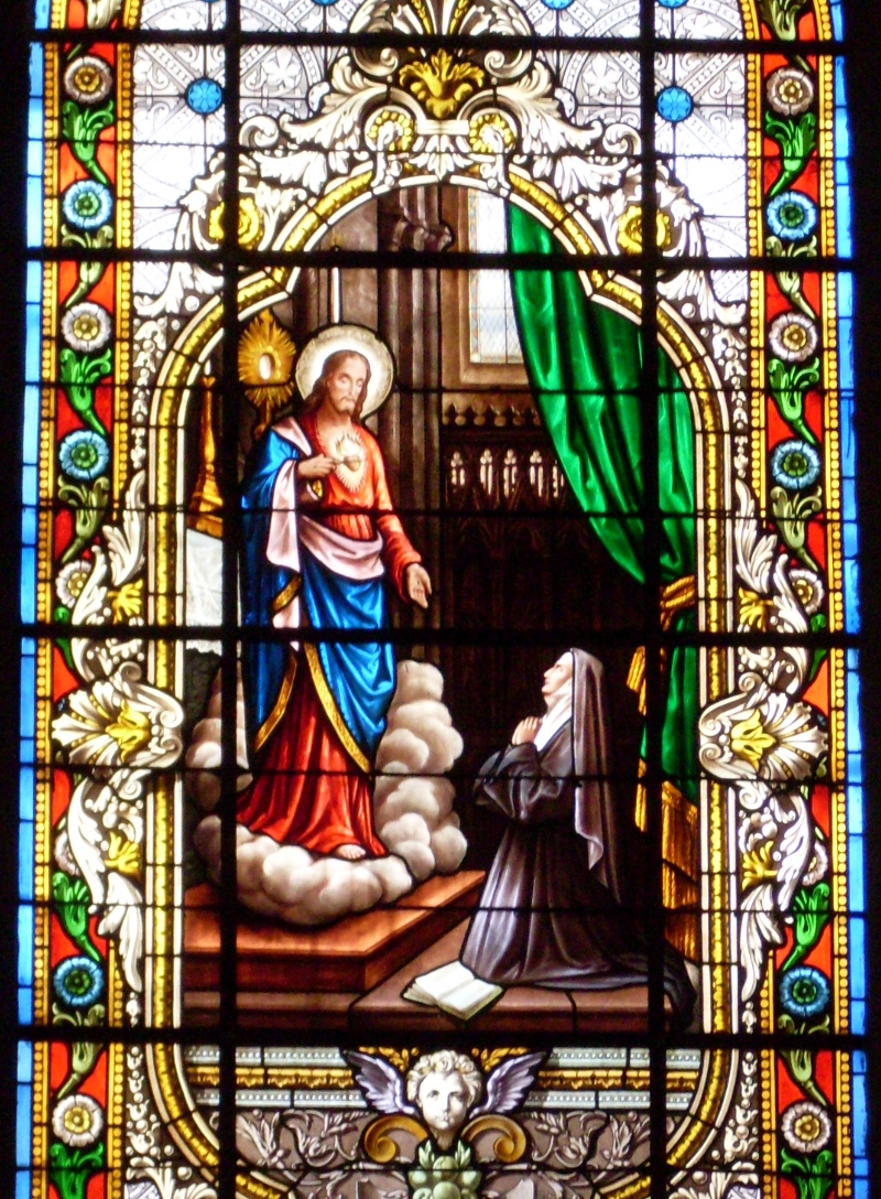 Le vitrail représente cette vision de Marie-Marguerite, qui fut canonisée par le Pape Benoit XV en 1920.