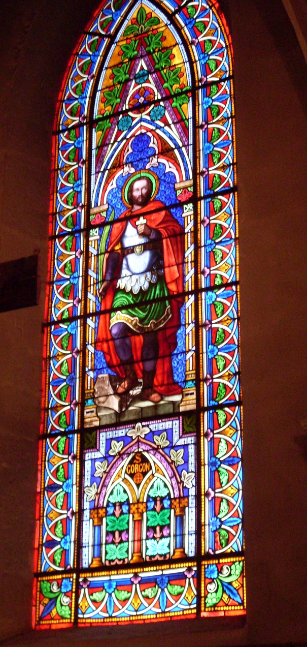 Vitrail de Saint Gorgon, patron de Pouxeux et Jarménil