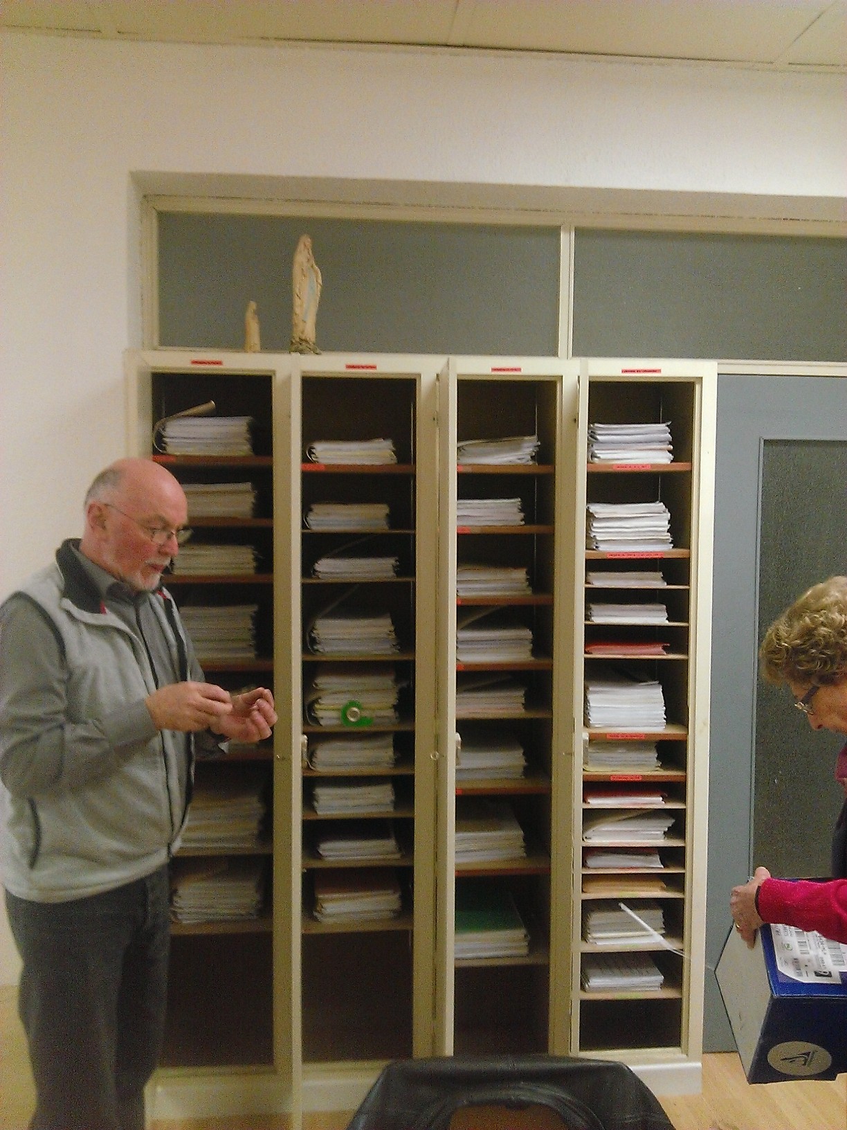 Lundi et Mardi matin, les membres de la chorale paroissiale sont en effervescence. En effet, le centre paroissial d’Arches ayant réouvert ses portes après travaux, il fallait rapatrier le matériel dans ce local afin d’y reprendre les répétitions hebdomadaires. Les partitions sises à la tribune de l’église d’Archettes ont été rapatriées, triées, regroupées avec celles d’Arches et enfin classées dans un placard bien pratique pour s’y retrouver.