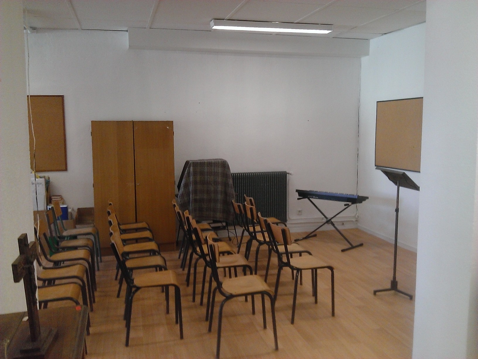 La salle a été aménagée afin de pouvoir travailler les chants de la messe du dimanche et les nouveautés, chaque mercredi à 19h00 lorsque la messe a lieu à Archettes ou Arches le dimanche qui suit.