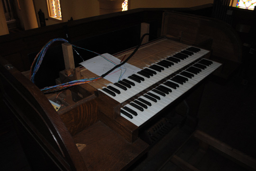 Vidé de tous ses câbles électriques recouverts de coton, l’orgue d’Arches vient de recevoir son nouveau "Cerveau". C’est une très grande carte informatique, semblable à celle d’un ordinateur. Celle-ci recevra les informations de chaque touche des claviers ou du pédaliers, des dominos de registres pour les transmettre aux électro aimants qui commandent l’ouverture des tuyaux. Ce système est particulièrement fiable. (Cliquer sur les photos pour les agrandir)