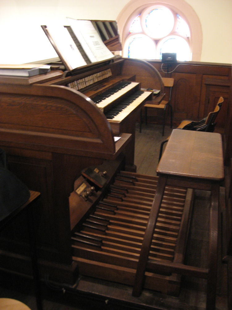 La Console, c’est le poste de pilotage. A partir des 2 claviers et du pédalier, l’organiste commande les quelques 800 tuyaux de l’instrument. Ceux-ci appartiennent à plusieurs familles : les flûtes, les bourdons et les anches. L’orgue d’Arches permet d’interpréter un large répertoire grâce à l’étendue de ses claviers de 61 notes et son pédalier de 30 notes contrairement aux orgues d’Eloyes ou Pouxeux, bien plus anciens (avec une tuyauterie de valeur) avec des claviers de 54 notes et un pédalier de 18 touches.