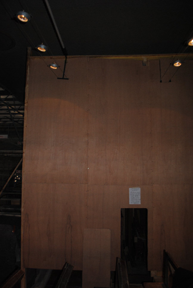 La tuyauterie de pédale situé contre le mur du fond a été déposé afin de faciliter le travail des peintres. La tuyauterie a été stockée précautionneusement dans le buffet de l’instrument à l’abri des poussière, gravats….