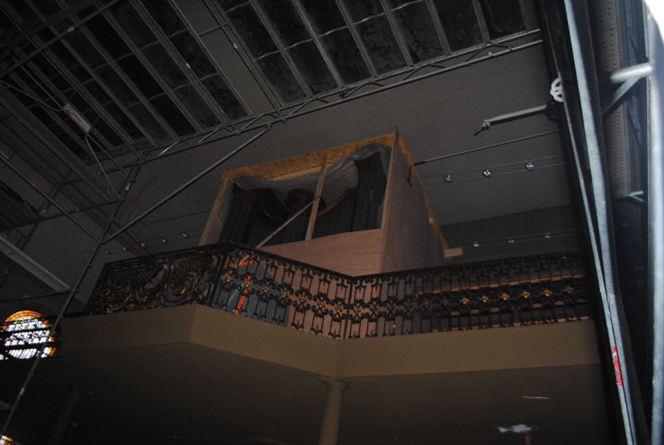 L’orgue, œuvre historique des frères Gehin, datant de 1870 a bien sûr reçu une protection plus importante. Un important sarcophage de bois enferme tout l’instrument. Le tout est également bâché.